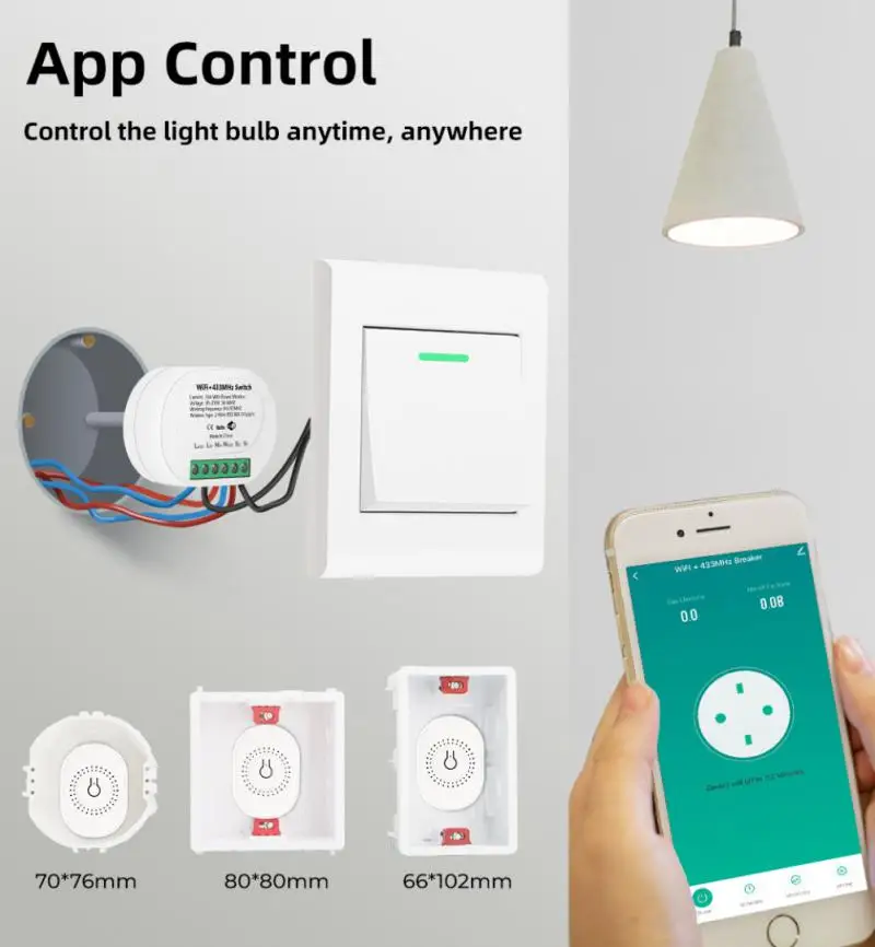 【WIFI 433 】 он может управляться с помощью приложения tuya/smart life, голосового динамика и может управляться беспроводным переключателем (433 МГц) и переключателем управления, что более удобно