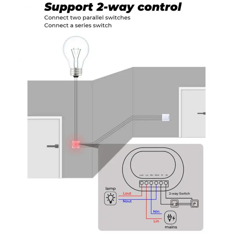 【 Поддержка 2 way】3 вида способов подключения, поддержка без переключателя, поддержка 1 позиционного переключателя, поддержка 2 позиционного переключателя. Может использоваться с механическим переключателем 2 способа перед подключением к дому