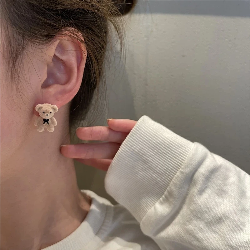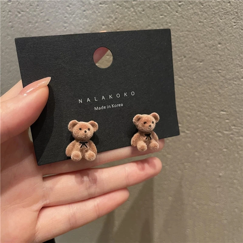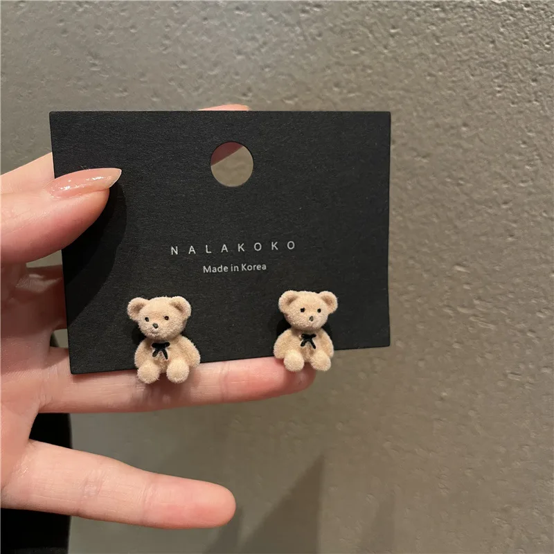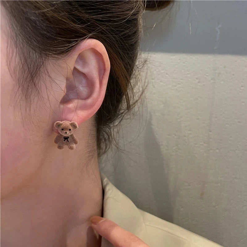 Корейские забавные плюшевые серьги-гвоздики, милый лук, медведь, изящная Серьга для женщин, девушек, Мультяшные животные, ювелирные изделия