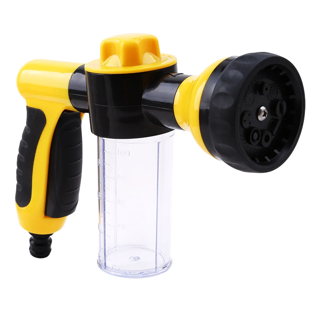 3. Насадка для шланга для мойки автомобиля имеет 8 опрыскивателей и дозатор для мыла (рекомендуется не помещать более тяжелый мыльный раствор непосредственно в инструмент, но мыльная вода может быть введена непосредственно.) Подходит для полива растений, лужаек, патио и мойки автомобилей, душа домашних животных и т. Д.
