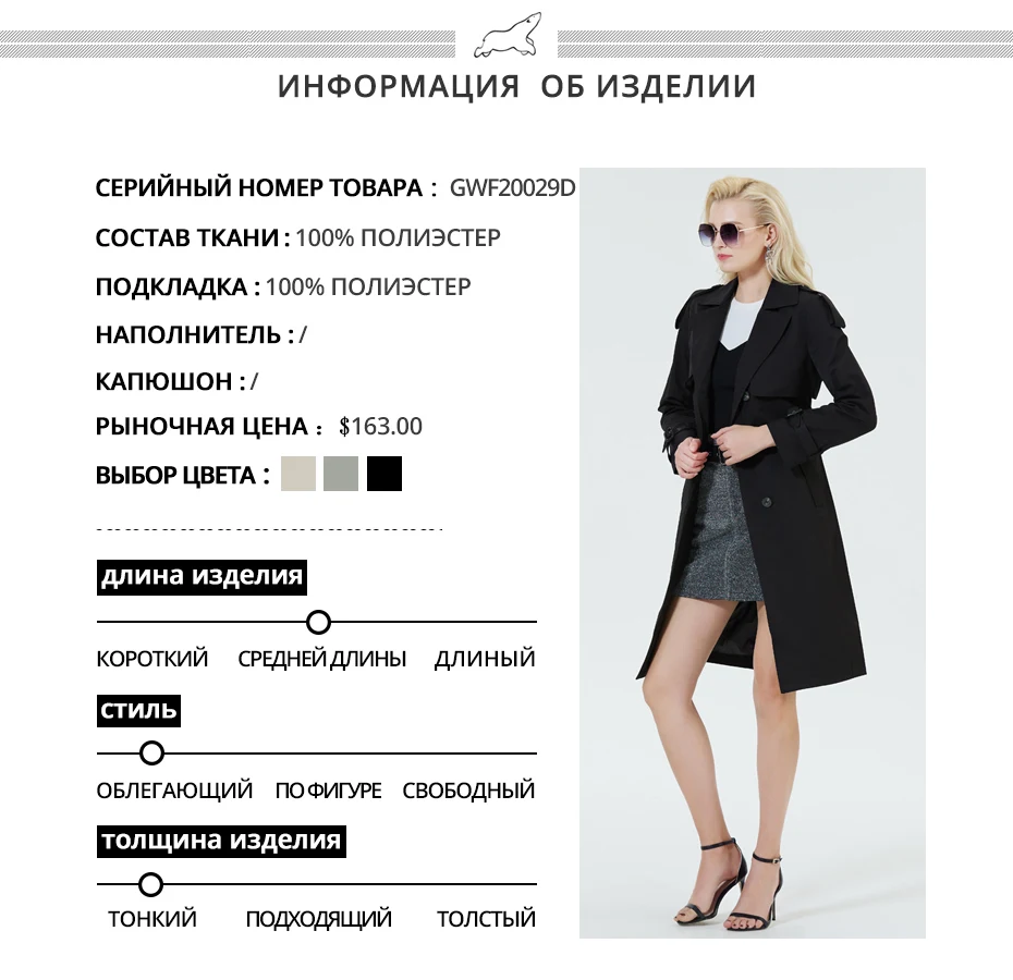 ICEbear 2021 женский плащ средней длины новая ветровка осенняя двуб...