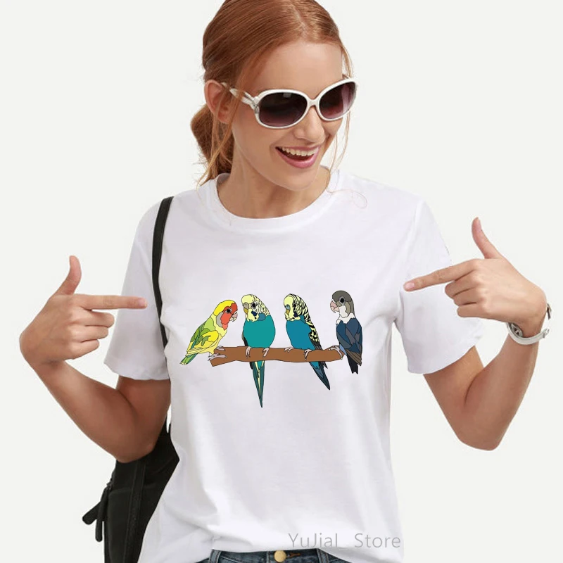 Новейшая Футболка с принтом кокатила, попугая, нот, птица, женская одежда, забавная белая футболка, женские летние модные топы, футболка для женщин
