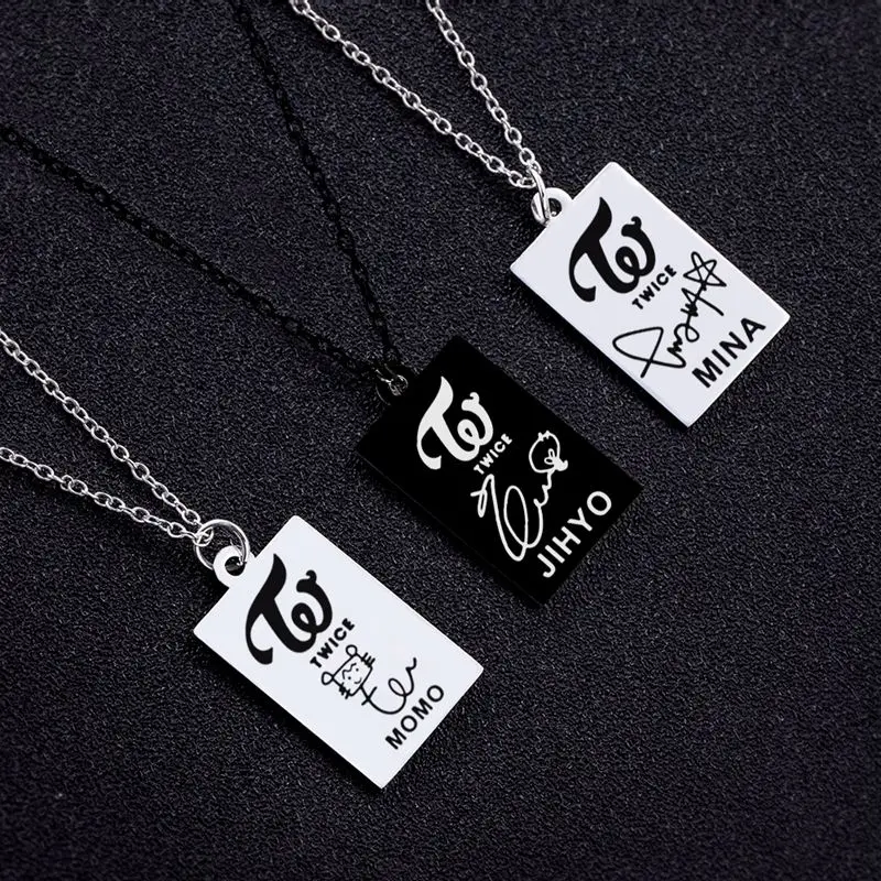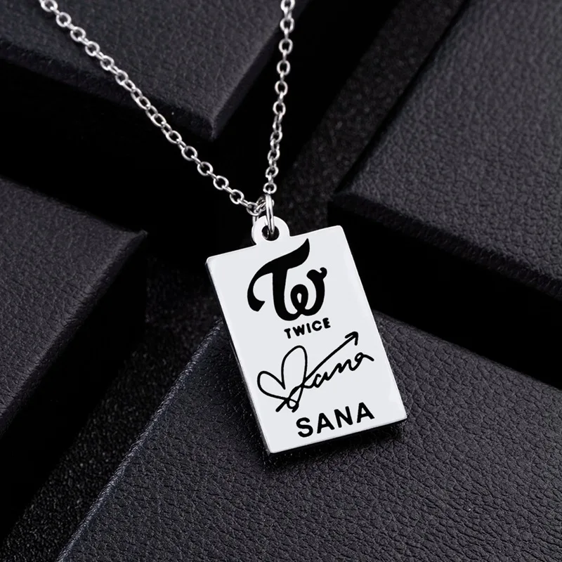 KPOP дважды член Подпись ожерелье из нержавеющей стали Sana MOMO Nayeon DaHyun ID Собака бирки ожерелье s для фанатов подарки