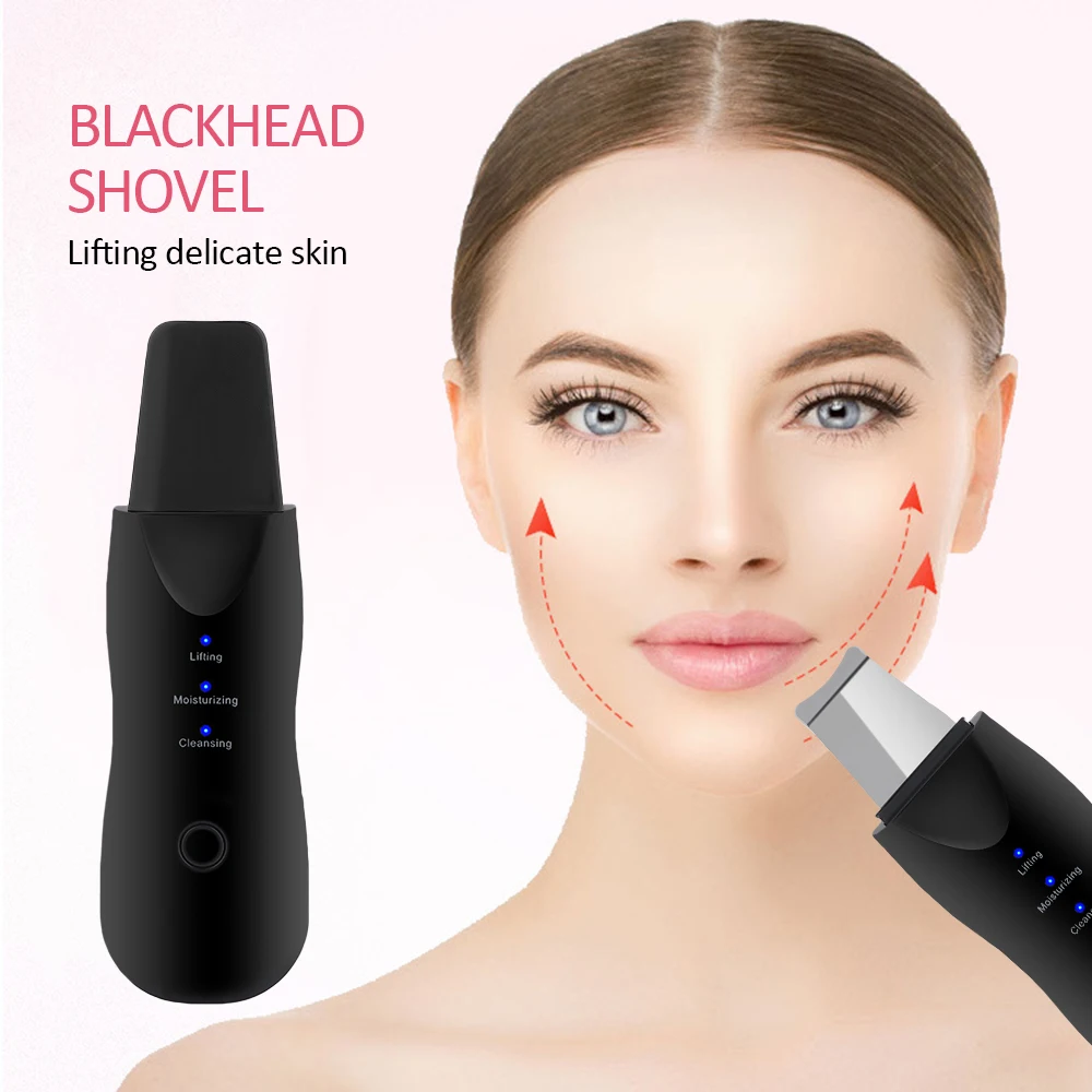 Ультразвуковой скребок для кожи, массажер для пилинга лица, лопатка для очистки пор, светодиодное освещение, удаление морщин, омоложение кожи, массажер для лица