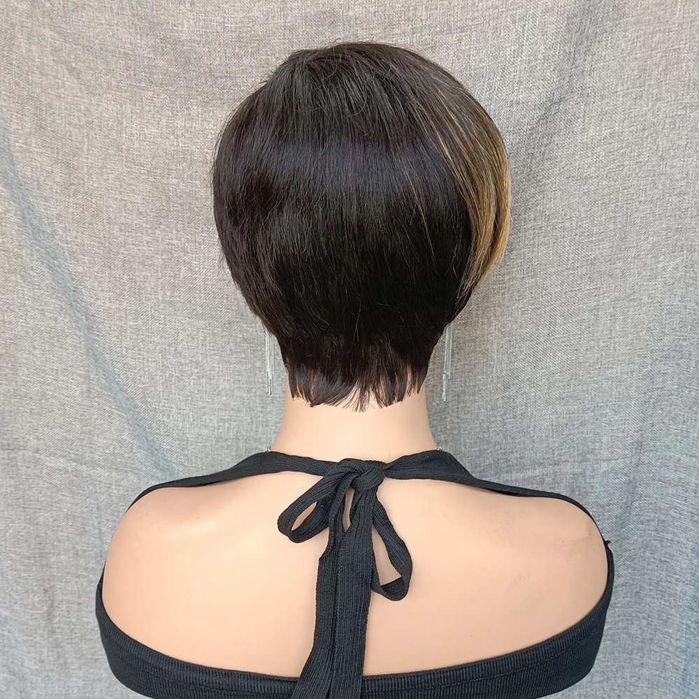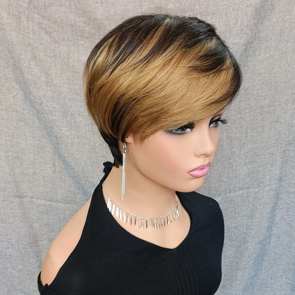Парик с коротким вырезом фея, дешевые парики из человеческих волос, прямые парики с челкой, полный парик из человеческих волос для черных женщин с эффектом омбре