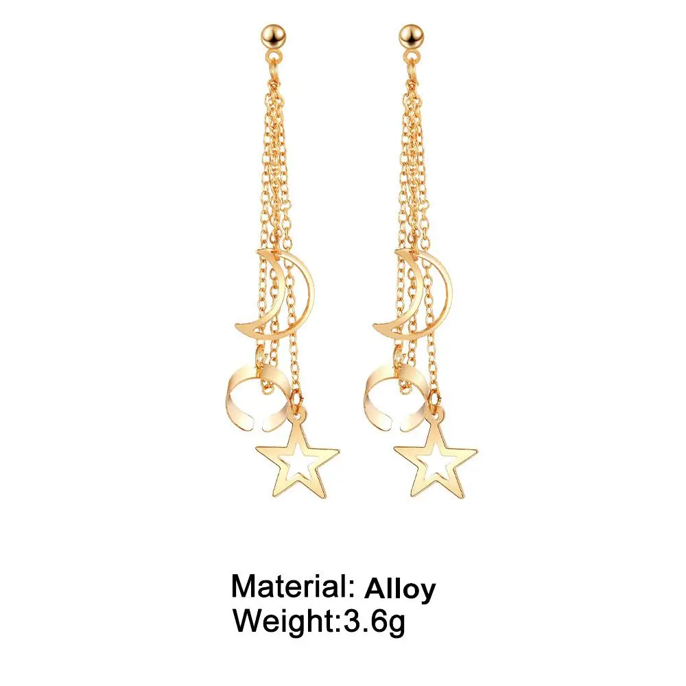 Товар: серьги в виде Луны и звезды/ушные манжетыТема: красотаПодвеска: звезда ЛуныМатериал: сплавЦвет: золотой, серебряныйХарактеристика:Подходит для подарочных мероприятий: дня рождения, праздника, бизнеса, сюрприза и т. д.Стильный и очаровательный.Высококачественные материалы, изысканные узоры, выглядят так мило и уникально.Быстрый и простой способ нарядить ваш праздник и добавить праздничный вид к вашим праздничным вечерние.Подарки на день рождения для вас и ваших друзей и семьи.Посылка включает в себя:1 шт. серьги