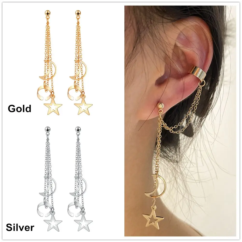 1 шт. новые модные серьги-клипсы со звездами для женщин, простые серьги-каффы с длинной кисточкой и искусственным хрящиком, подарок
