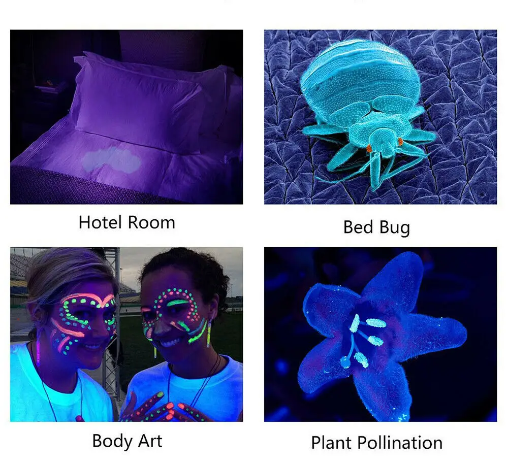 "ОсобенностиНеобходимый инструмент для правоохранительных органов, почтовых инспекций, таможни, медицинской экспертизы, HVAC ремонта30% ярче: содержит 51 УФ-светодиод, чтобы покрыть видимость на больших областях, по сравнению с типичной подсветкойШирокое Обнаружение пятен: работает для обнаружения пятен и мочи собак, кошек и других домашних животных на коврахАлюминиевый корпус, светильникИзлучает 395-нанометровую длину волны, охотничьи скорпионы и минералыОтлично подходит для проверки банкнот, кредитных карт, флуоресцентных чернил (невидимых чернил), треснутой стеклянной посуды или даже места происшествияОбщие виды применения:Обнаружение яиц для головы и тела (НИТ и яйца отражают ультрафиолетовый светильник)Охотничьи скорпионы и другие насекомыеОбнаружение ошибок в кроватиФлуоресцентные драгоценные камни, минералы и окаменелостиИспользовать с УФ автомобильной краской для обнаружения автомобильной охлаждающей жидкости A/C фреон хладагент газа утечкиДетектор Утечки HVAC / ACНайдите пятна для домашних животных, мочу для собак или кошекНайти пятна кровиОбнаружение телесных жидкостей, которые флуоресцентные при воздействии УФ-светильникПроверка фальшивых бумажных банкнотОбнаружение поддельных штампов и этикетокНочное время рыбаков-светится в темноте Приманка (УФ-светильник светится)Осмотрите вазелин, ЕАПГ, депрессию, уран, топаз и Канарское стеклоОбнаружение грызунов-поиск мышей или крысиных капель и мочиСм. Некоторые татуировки, боди-арт и флуоресцентные штампыТест для истинных стеклянных кнопок вазелинаПоиск пятен для пищевых продуктов и домашних животных на ковровых покрытиях и других поверхностяхУФ-клей для отвержденияПроверка стекла на наличие трещин и других дефектовПоиск минералов на открытом воздухе (освещает флуоресцентные минералы)Технические характеристикиСветодиодный Qty: 51 ультра яркий светодиодный sРазмеры: 14,5x5,4 см (прибл.)Питание: 3x AA батарея (не входит в комплект)Цвет корпуса: черныйПримечание:Не смотрите в фонарик во время работы или мигания в глаза (включая ваших питомцев).Из-за интенсивности этого УФ-светодиодный устройства УФ защитные очки рекомендуется.Посылка1 x светодиодный фонарик UV 51"