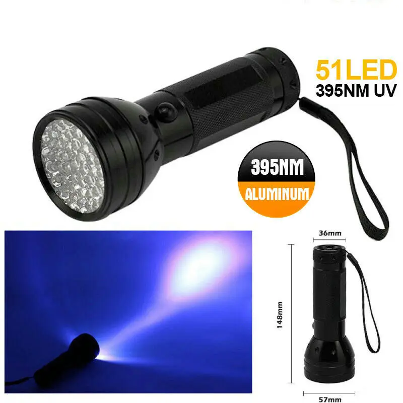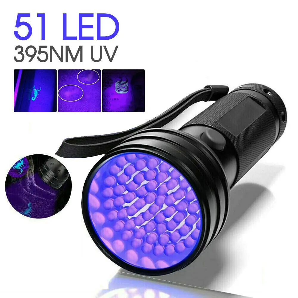 51 Светодиодный УФ-фонарик, фонарик, лампа, Ультрафиолетовый черный светильник, алюминий, 395 нм