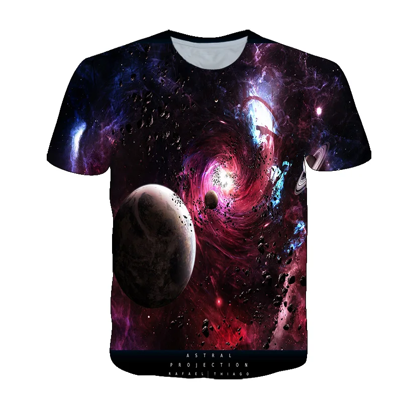 Футболка мужская с 3D-принтом звездного неба, круглым вырезом и коротким рукавом