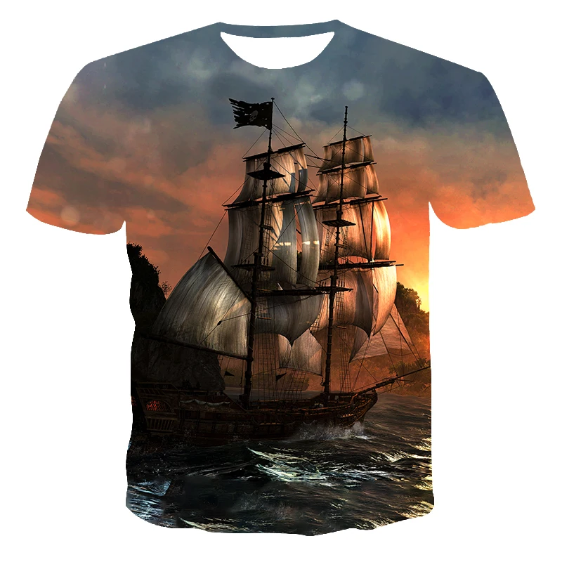 Модная Летняя мужская футболка с 3D-принтом пейзажа, Повседневная м...