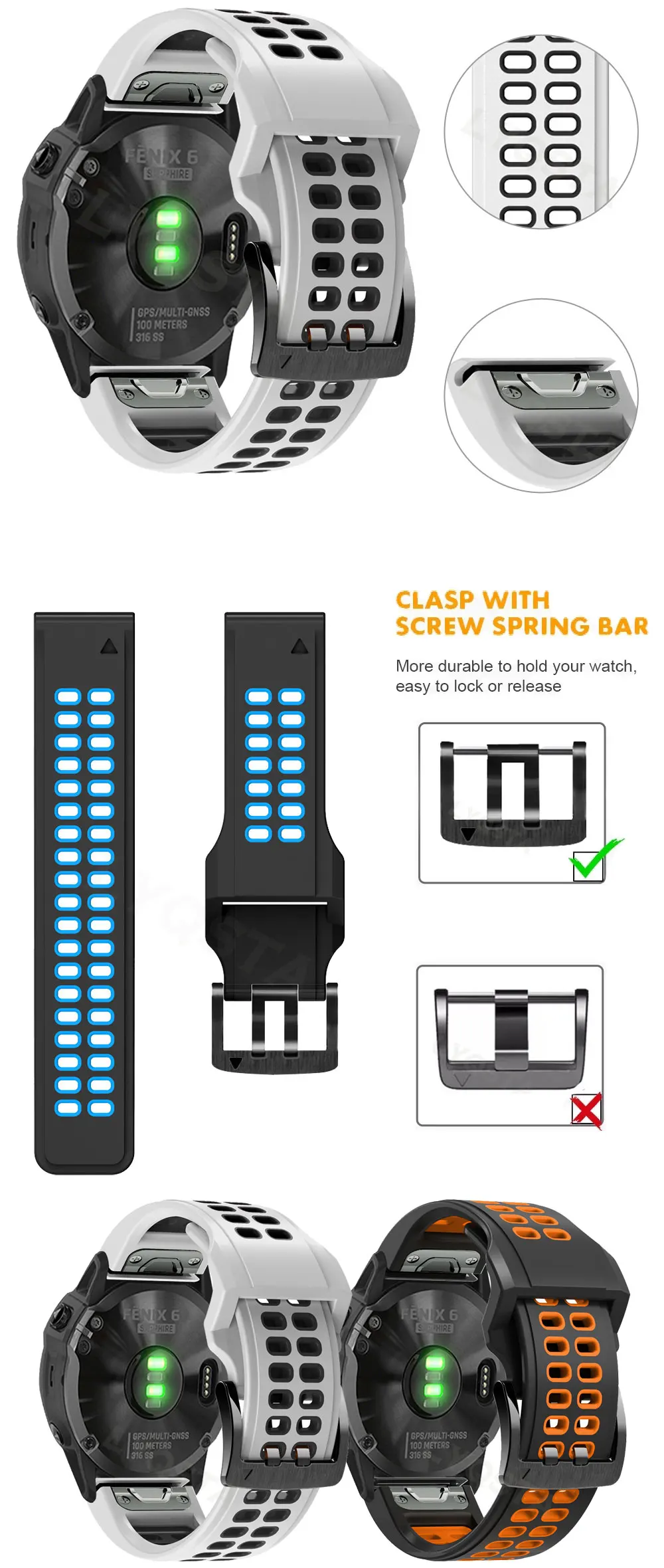 Used for 3watch band strap for Garmin Fenix 5/6 Pro