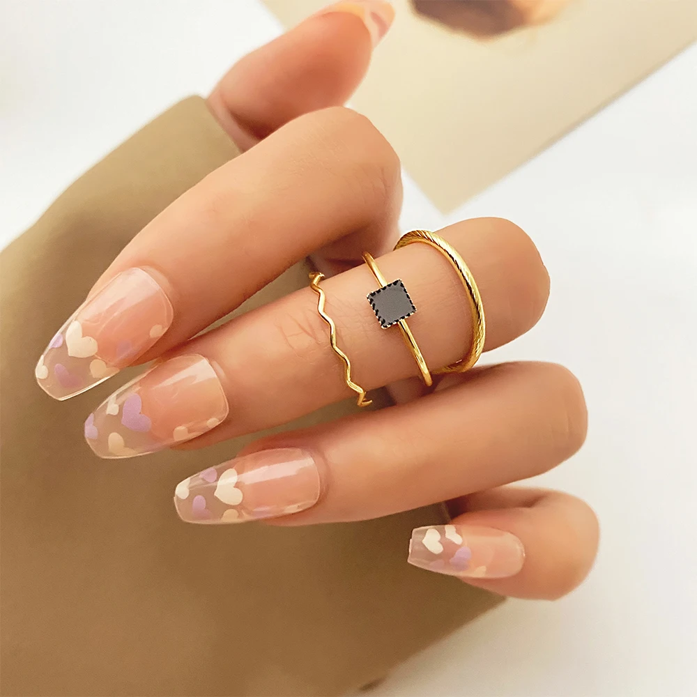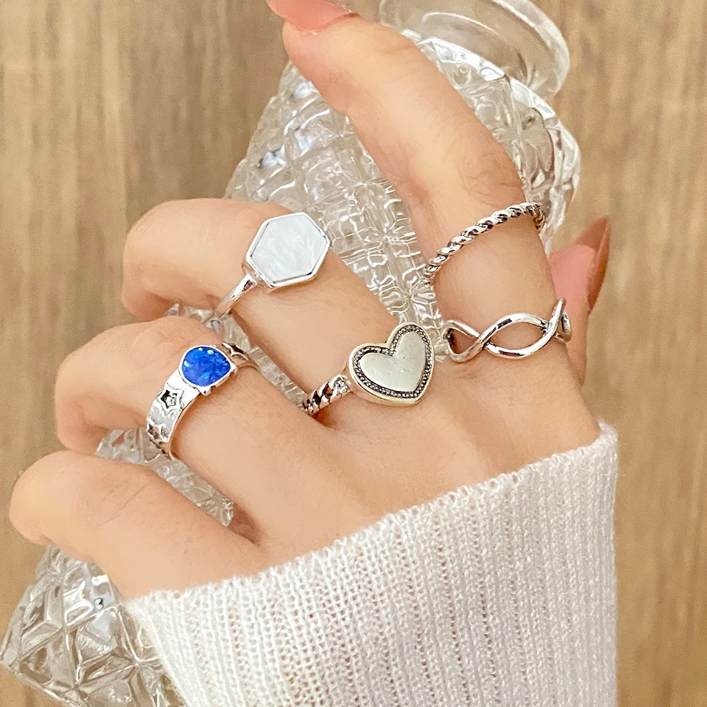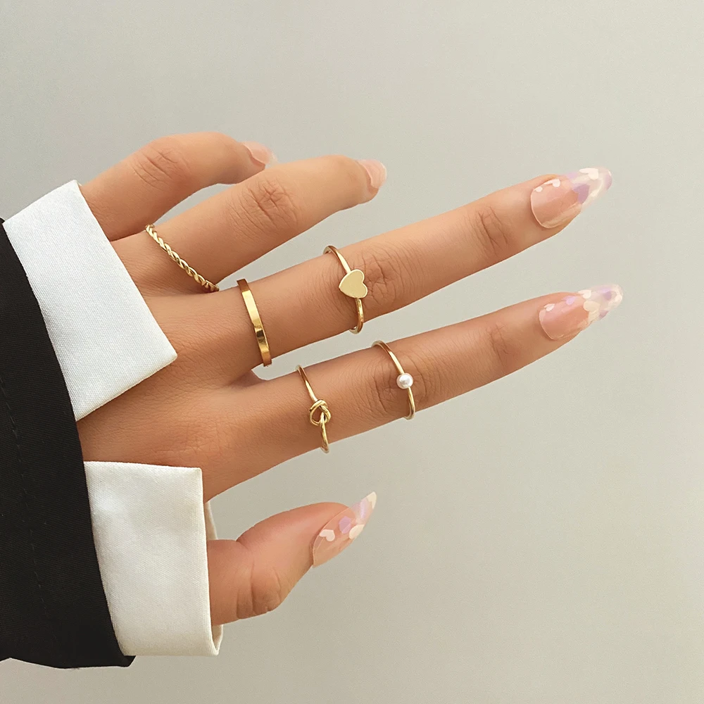 Набор колец в стиле бохо с золотым сердечком, женское винтажное гео...