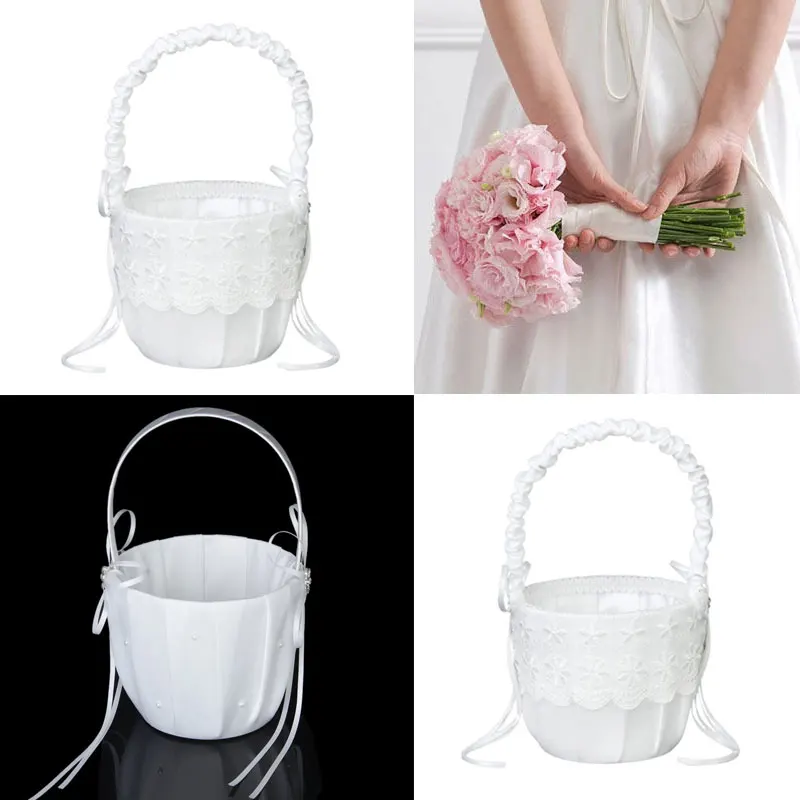 Корзина для цветов для свадебной церемонии, корзина для хранения цветов в виде прекрасного кольца, подушки, корзина для цветов для девочек, корзина для цветов с кружевом и украшением