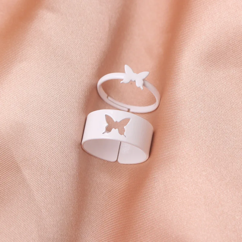 Парные открытые кольца в стиле хип-хоп и панк с бабочками разных фо...