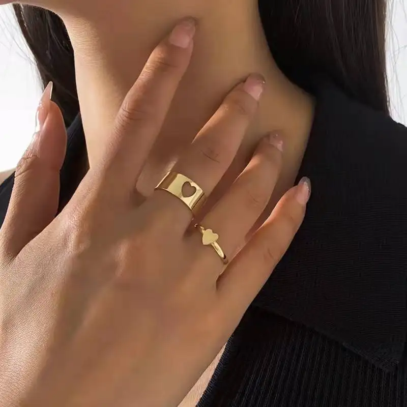 Парные кольца с сердцем и кубинской цепью в стиле панк, 2 шт.