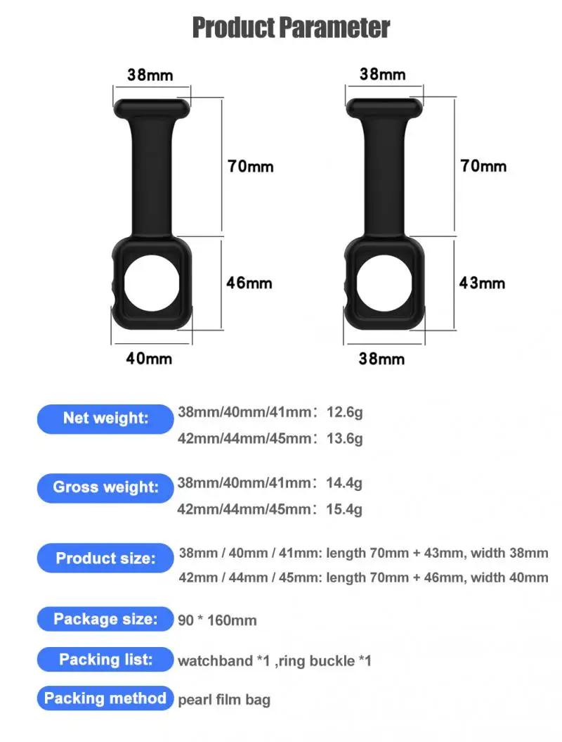 1, два размера, применимые серии Apple Watch, все размерные движения; 2, кольцевая игла с пряжкой, избегайте падения, легко снимается;