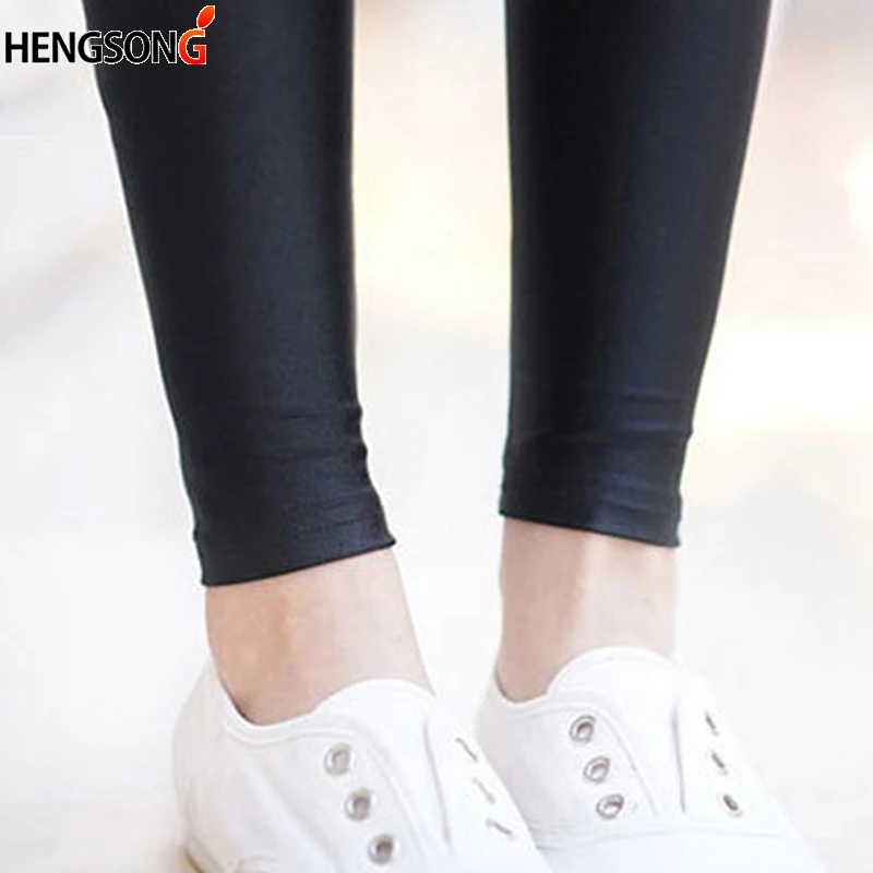 Женские леггинсы, флуоресцентные, эластичные, глянцевые, черные, сп...