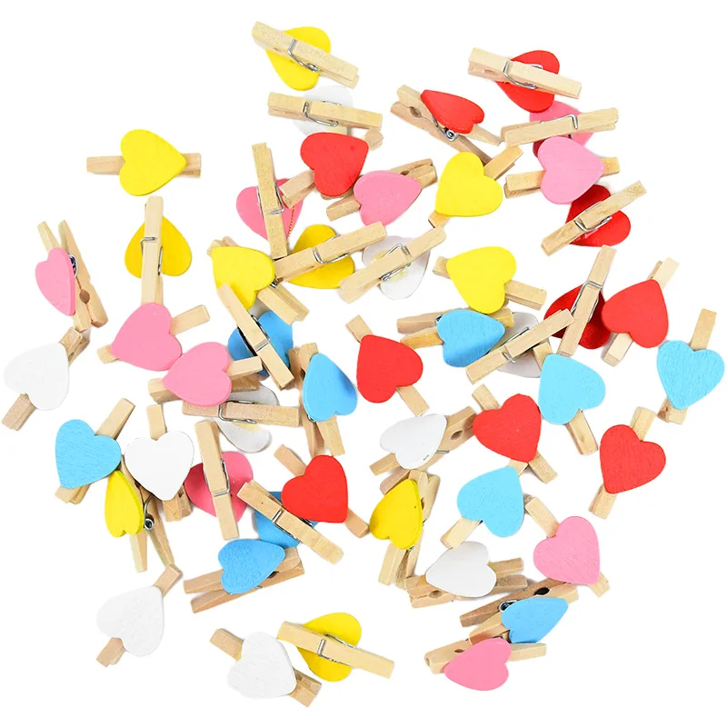 200 шт.лот, разноцветные деревянные клипсы с сердечками 3x0,4 см, п...