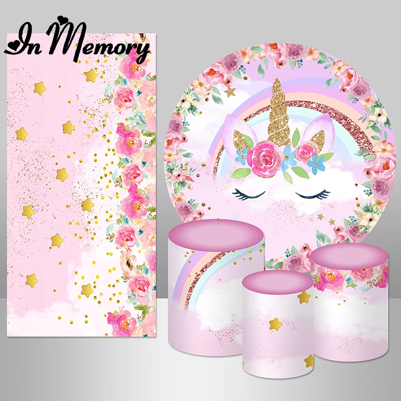 InMemory Новый дизайн Розовый Единорог тема круглый фон Обложка цветы Радуга Блестящий Фон стол Баннер пол плинтус чехлы