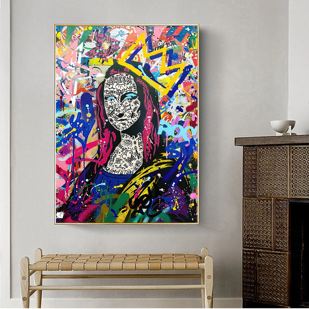 Королева Мона Лиза граффити искусство холст настенные картины художественные плакаты и принты улица знаменитое Искусство картинки для гостиной