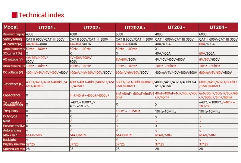 Номер моделиUT201+/UT202+/UT203+/UT204+/UT202A+