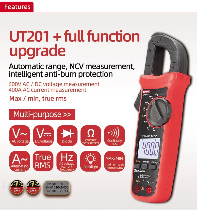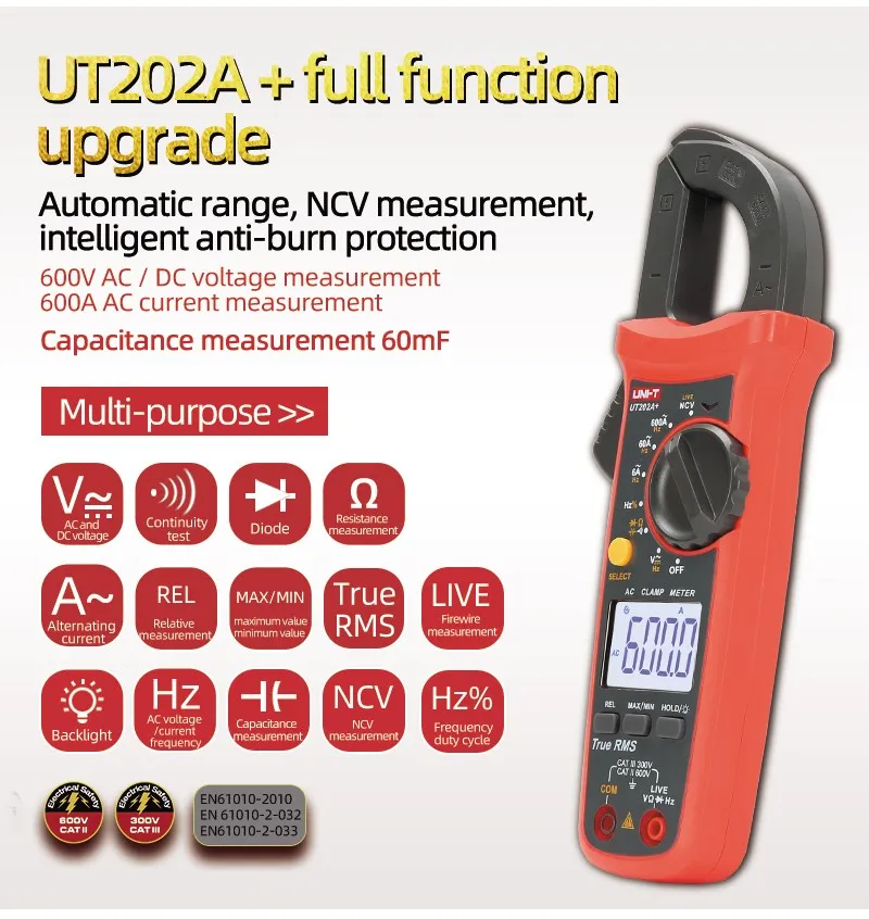 UNI-T цифровой токоизмерительный прибор переменного тока постоянного тока Автоматический диапазон True RMS Высокоточный мультиметр UT201 +/UT202 +/UT203 +/UT204 +/UT202A +