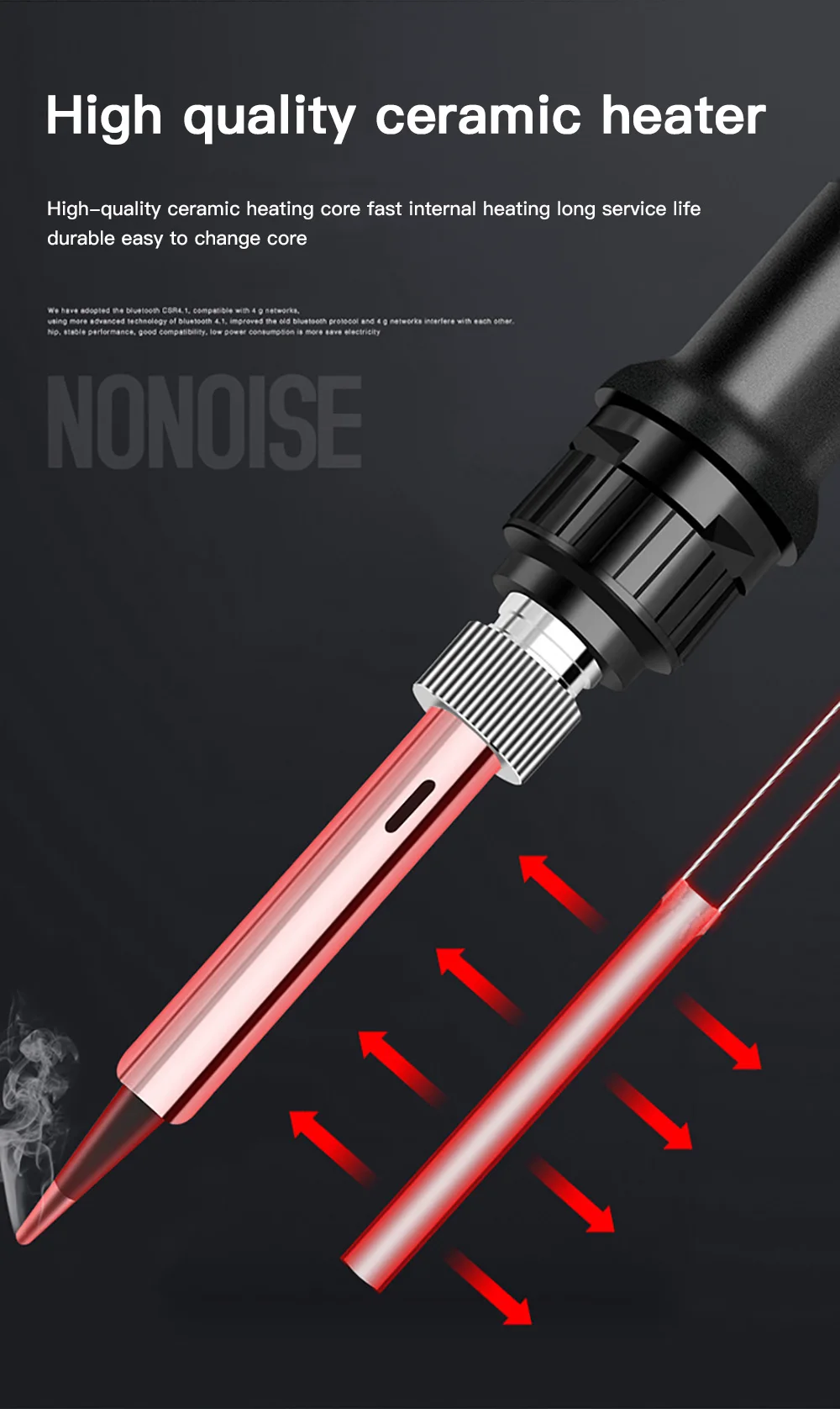 Нет необходимости в паяльной станции, просто подключите и играйте, а также с мягким захватом и нескользящей ручкой