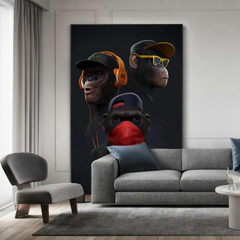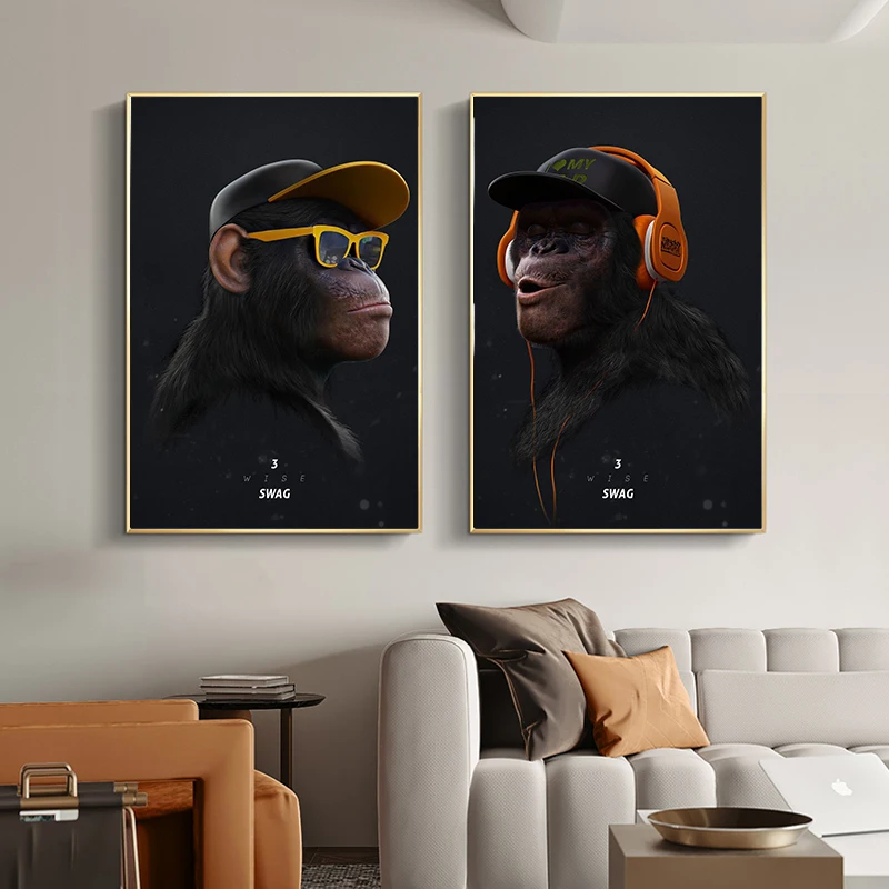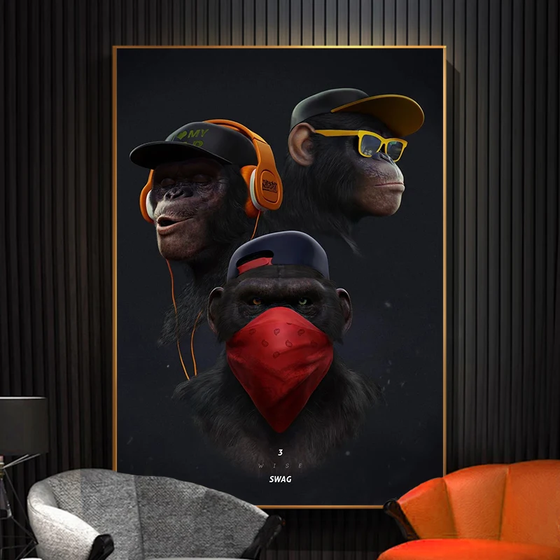 Постеры и принты Three Wise Swag, Картина на холсте с тремя крутыми орангутанами, картина для прослушивания музыки, обезьяны, картины для украшения дома