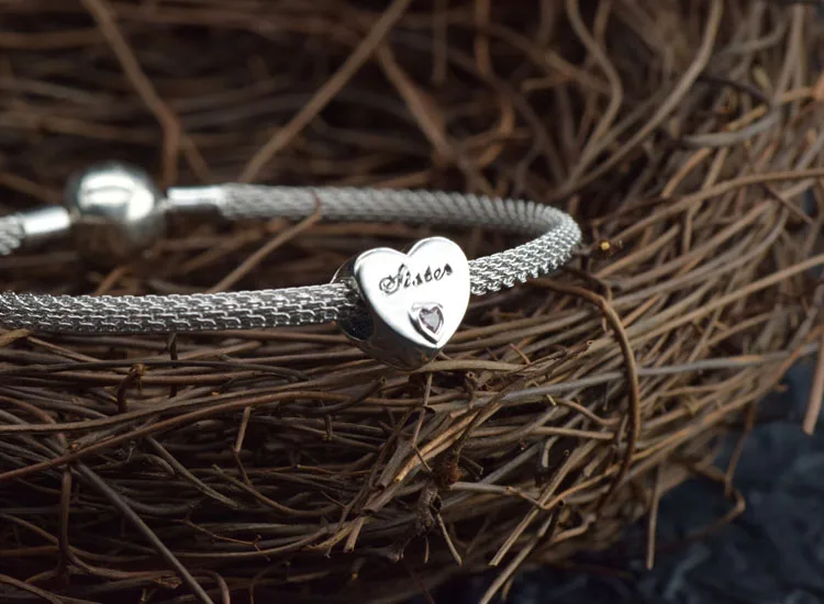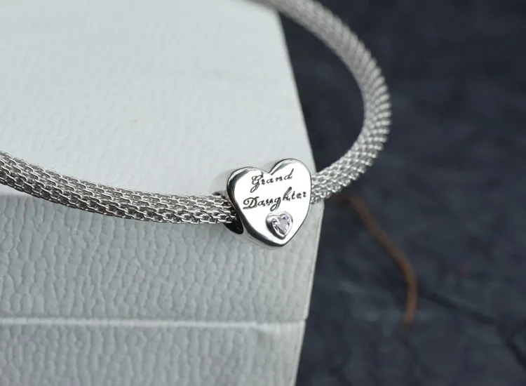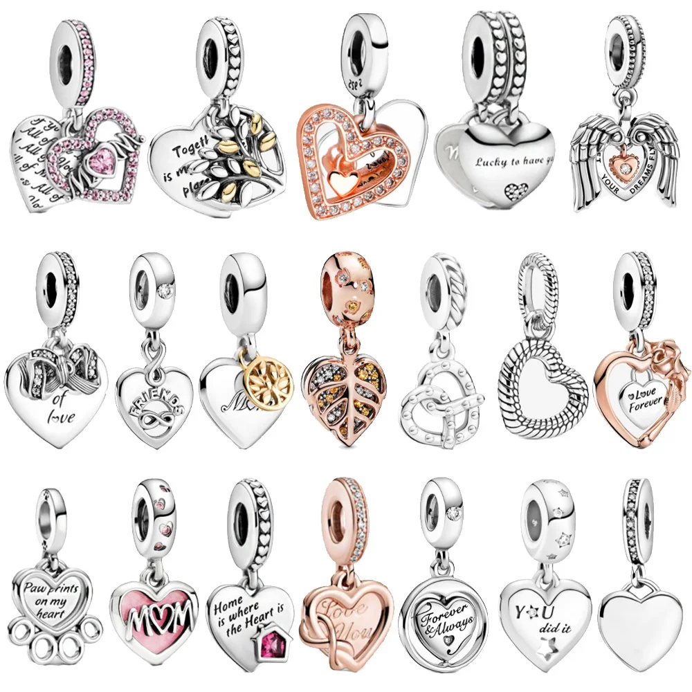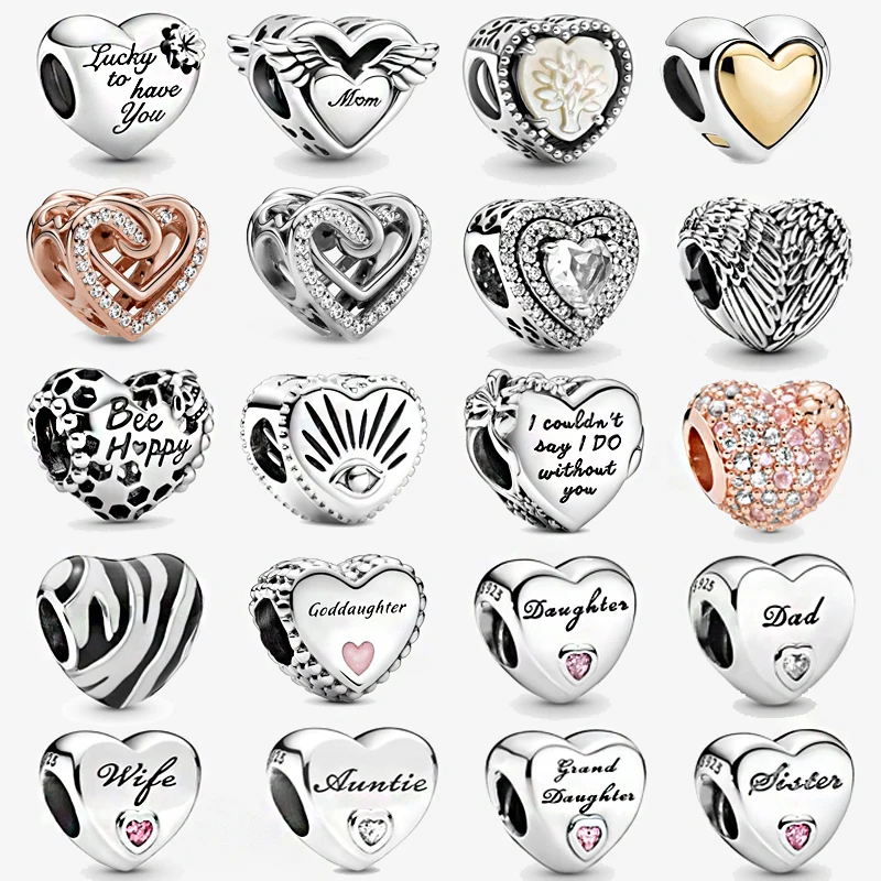 Подлинное серебряные бусины 925 пробы сердце и мама двухцветное сем...