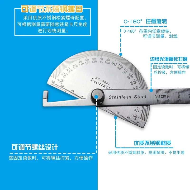 180 градусов простой транспортир металлический Гониометр угловая линейка из нержавеющей стали деревообрабатывающий инструмент вращающаяся измерительная линейка