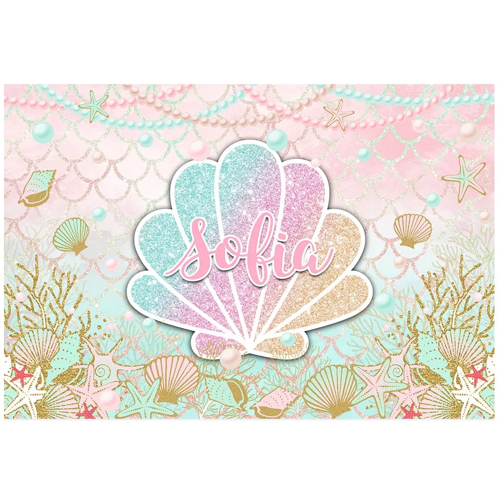 Mocsicka фон для фотосъемки с изображением русалки на день рождения Декор жемчужина новорожденный фон для фотосъемки на вечеринку для будущей мамы с именем на заказ