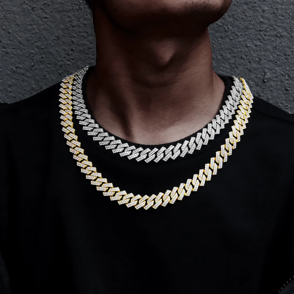 Ожерелье Стразы в стиле хип-хоп, Мужская цепочка из кубинской цепи, Серебряный чокер, золотой ожерелье рэпера, браслет, украшения в стиле панк, хип-хоп