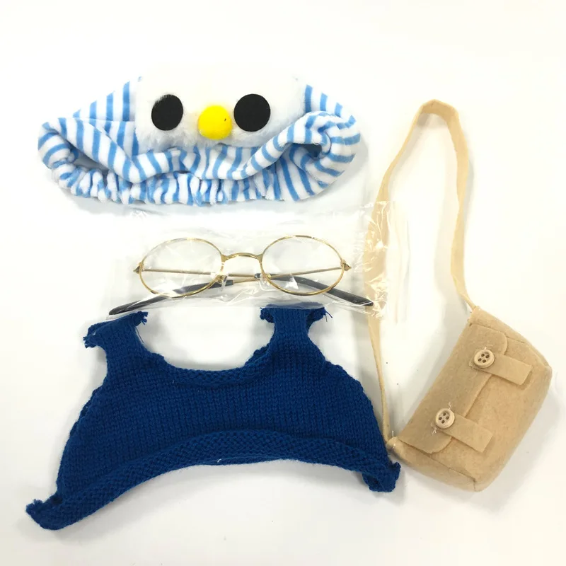 Желтая утка 30 см, Одежда для кукол, сумка для очков, шляпа, аксесс...