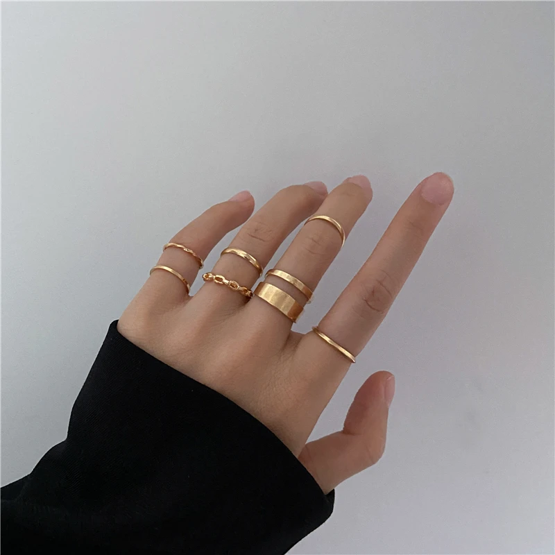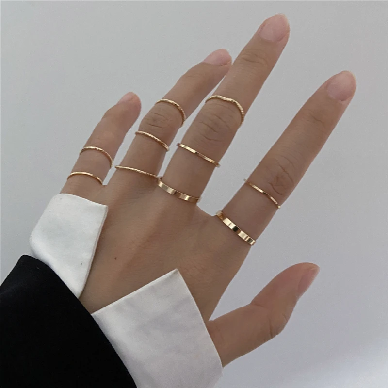 Комплект колец в стиле хип-хоп для женщин и девушек, тонкие кольца неправильной формы, простые кольца на палец, модные ювелирные украшения для вечеринок