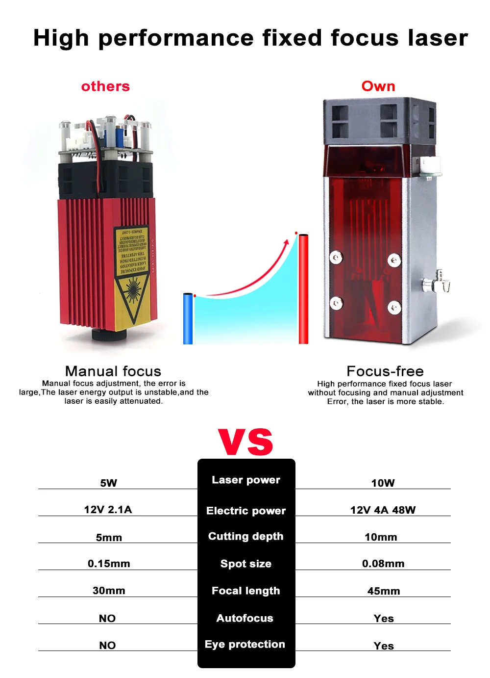 Очень быстрая доставка, я не уверен в мощности лазера, действительно выход 80 Вт/10 Вт, так как он поставляется с 12 В/6 А (80 Вт) И даже немного не нагревается, но у меня нет возможности проверить это.