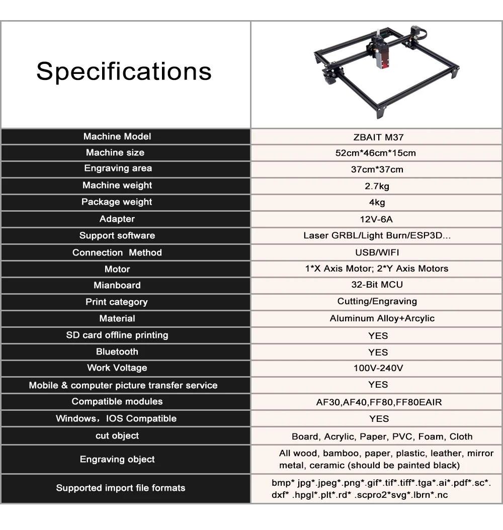 Лазерный гравировальный станок ZBAITU, лазерный резак 80 Вт, резак, гравер по дереву 37x37 см с воздушнымофлайндеревообрабатывающими инструментами