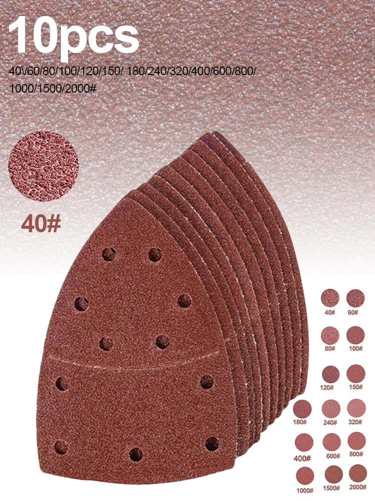 10 шт., треугольные шлифовальные листы, 11 отверстий, Зернистость 40 2000