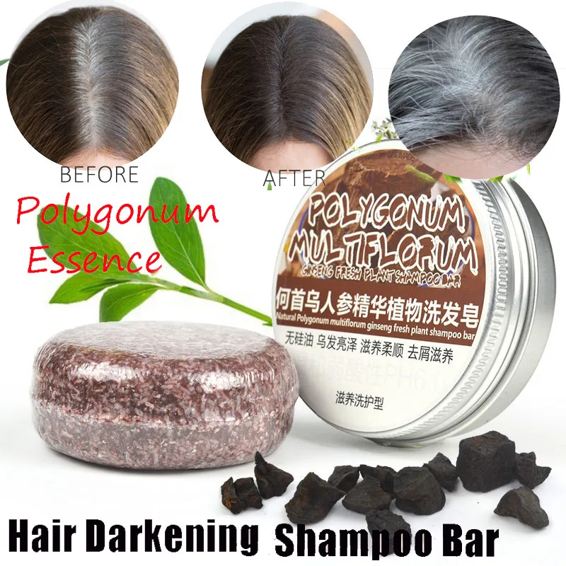 Новая эссенция Polygonum, шампунь для затемнения волос, барное мыло, натуральная Органическая мягкая формула, шампунь для волос, очищение для серых волос