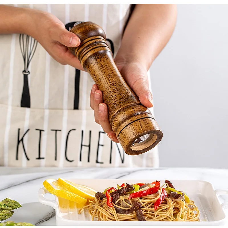Классическая Ручная мельница для соли и перца из дубовой древесины, для сезонных приправ, измельчитель 5810 дюймов, многофункциональная мельница, кухонный инструмент для приготовления пищи и барбекю