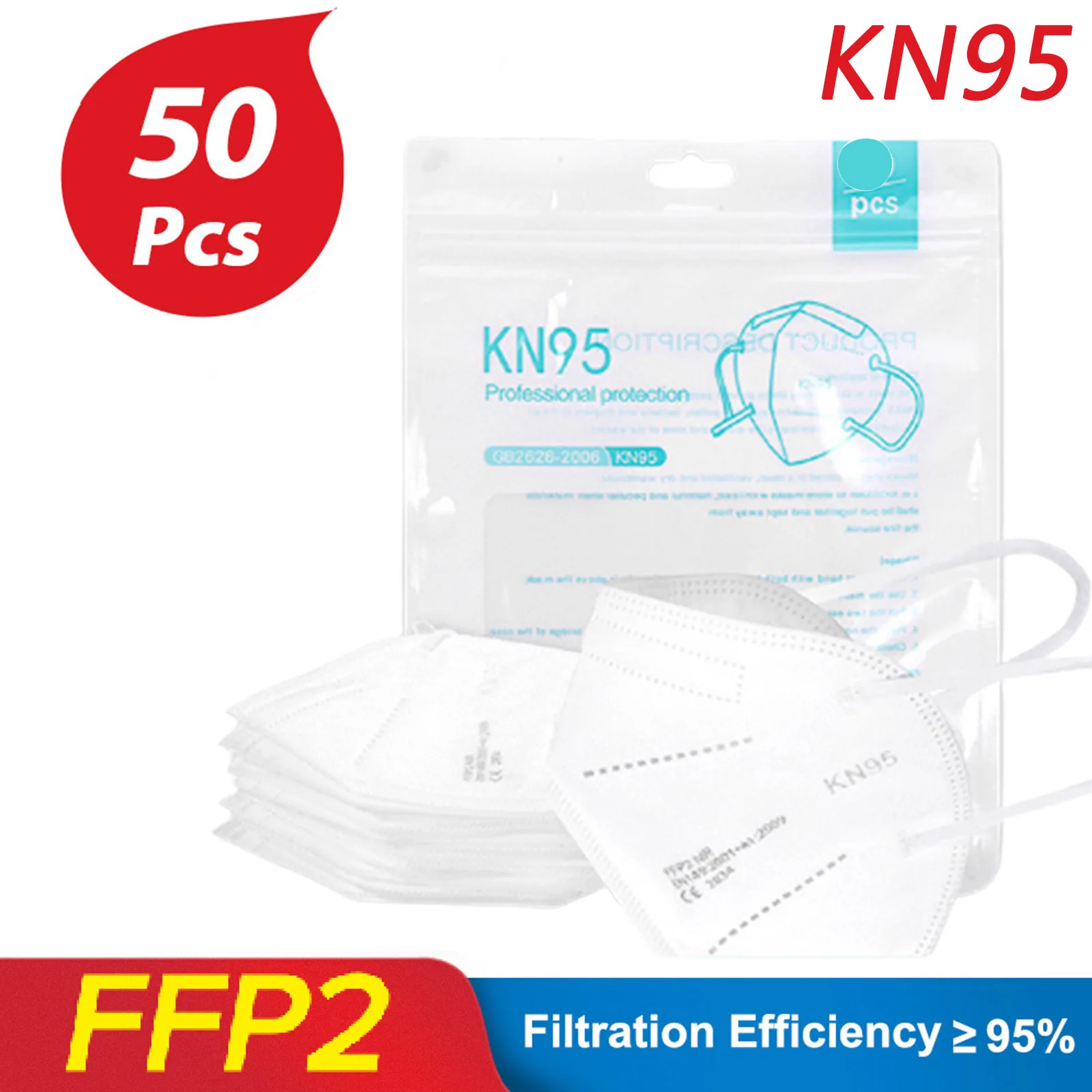Маска для лица KN95 для взрослых mascarillas FFP2 CE маска противотуманная и противотуманная Нетканая однотонная белая ffp2mask mascarillas fpp2 маски