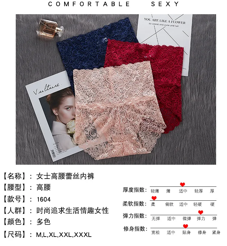 Сексуальное кружевное белье для женщин Трусики с высокой талией тру...