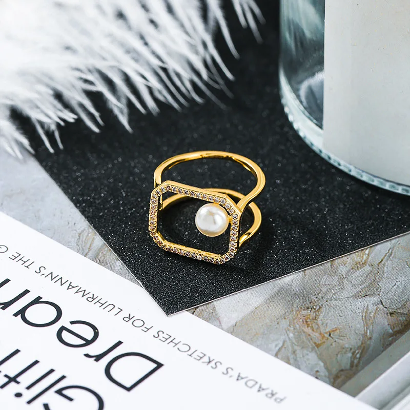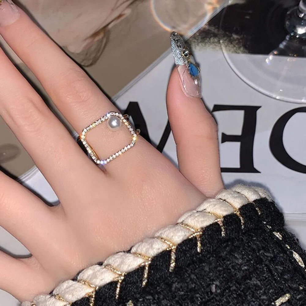 Название модели: женское модное кольцо с имитацией жемчуга и циркония темперамент элегантный Размер открытое регулируемое Золотое кольцо на палец ювелирное изделие подарок
