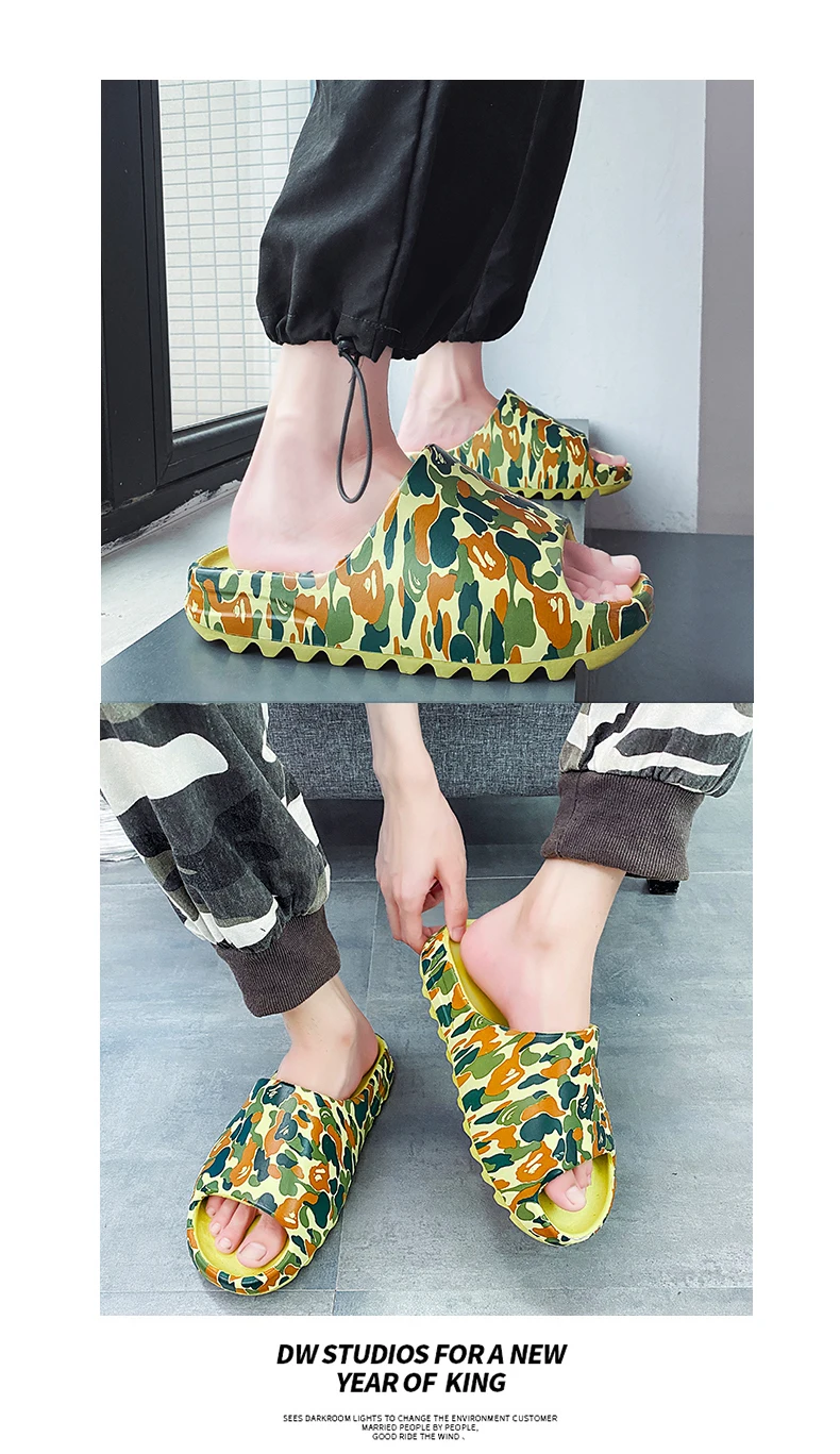 Мужские камуфляжные шлепанцы, мягкая подошва, толстая подошва, комнатные тапочки, 2022