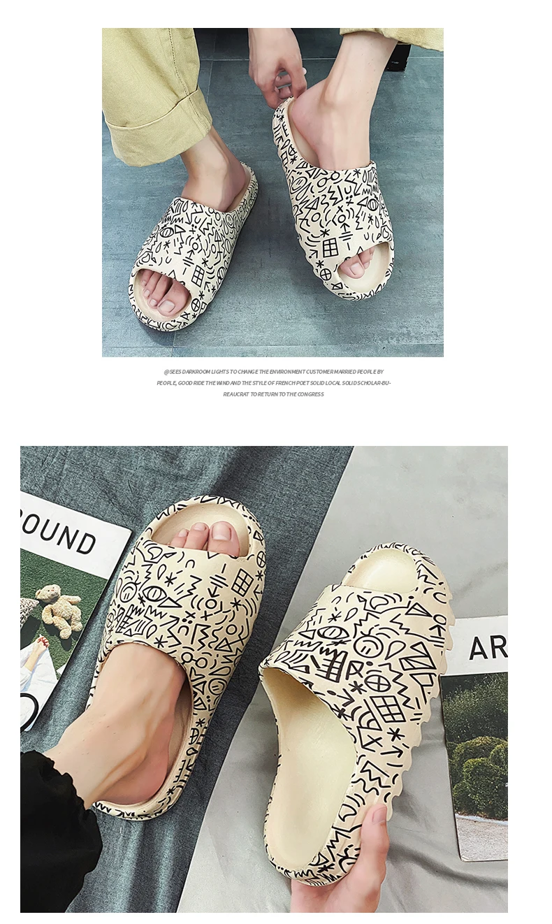 Сандалии унисекс с цветочным принтом, пляжные шлепанцы с граффити, ...
