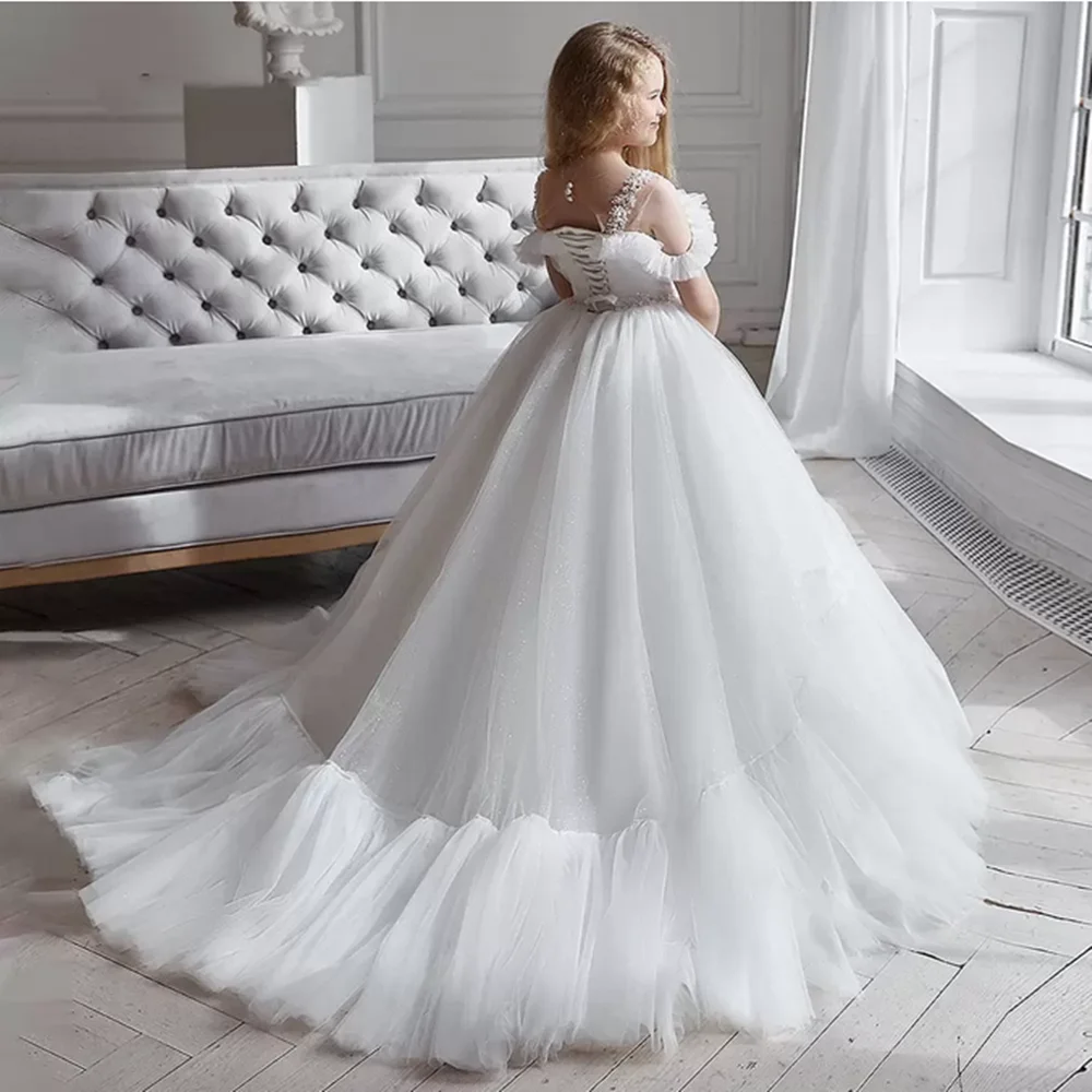 Классические платья для девочек с цветочным принтом на свадьбу, модные наряды с оборками, бусинами и кристаллами, пышное платье до пола, детское платье принцессы на день рождения