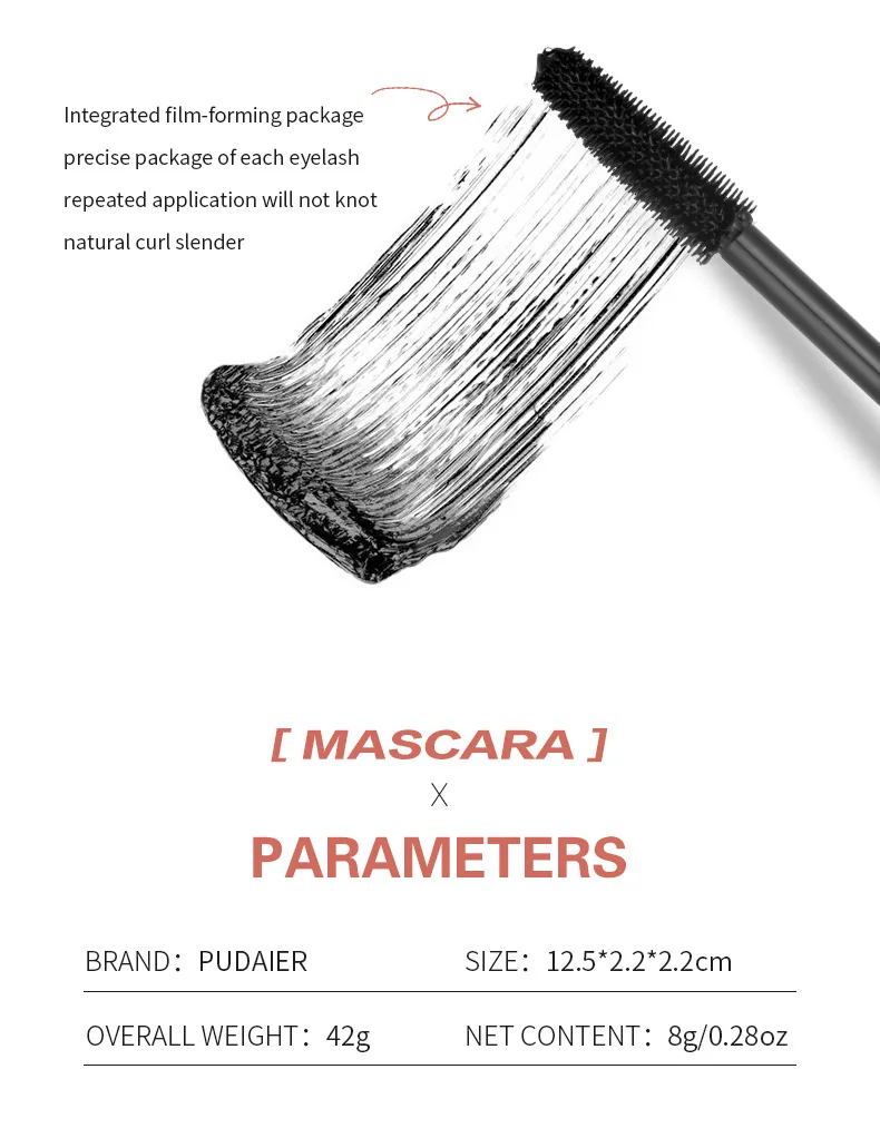 Модные женские милые инструменты для макияжа ресниц Красота Новая стильная волнистая тушь для ресниц Pudaier с волокнами, водостойкая, устойчивая к поту, тушь для ресниц для макияжа глаз с защитой от грязи и удлинения