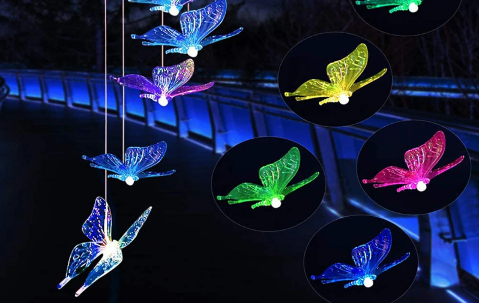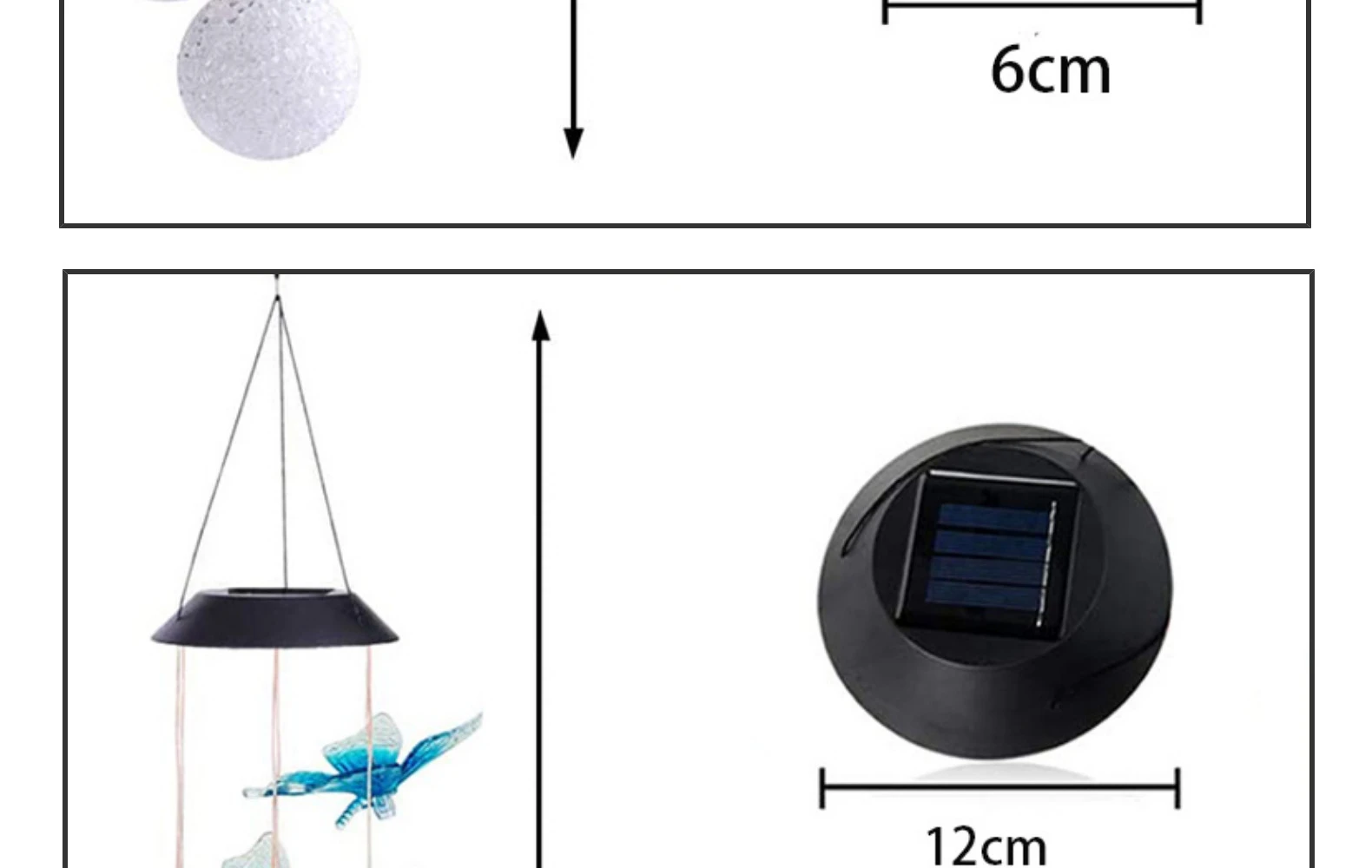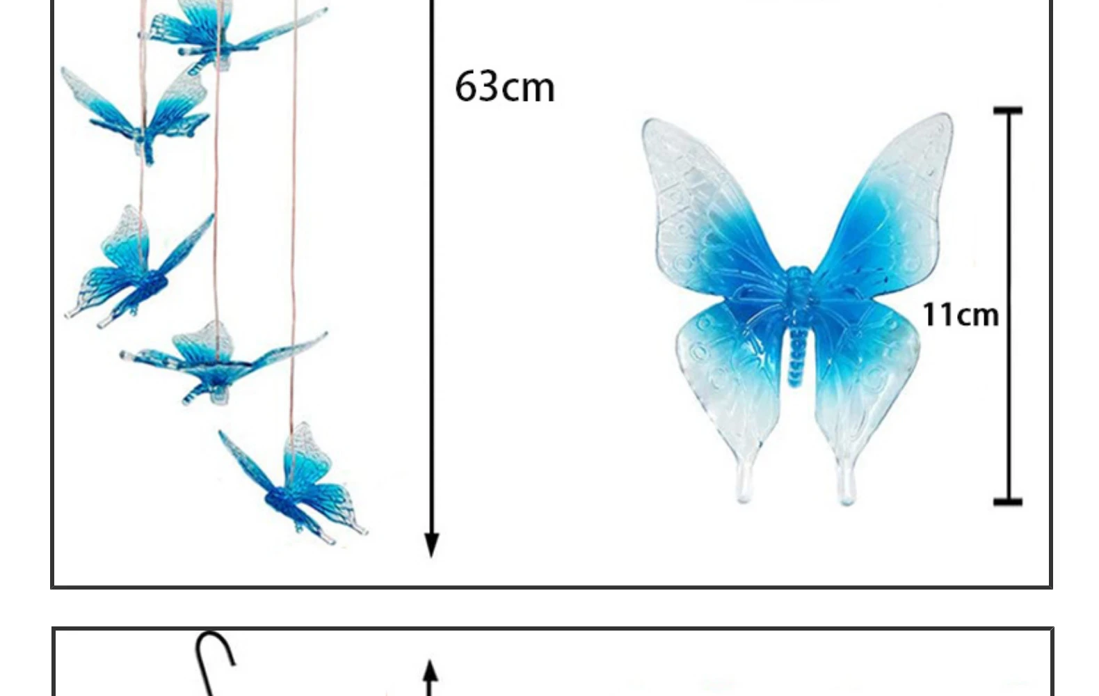 Простота установки: не требуется проводка или внешний источник питания. Используя прочные железные крючки, вы можете безопасно повесить колокольчики с бабочками. Вы можете легко повесить его на деревья, заборы, ворота, дворы, лужайки и другие места, которые вам нравятся.