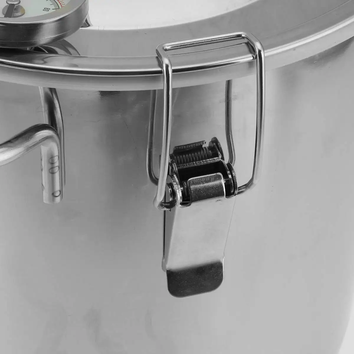 Технические характеристики:-Сварка: изделие сварено аргоном, чтобы избежать каких-либо проблем со здоровьем, связанных с сваркой и пайкой, построенными спиртовыми сваями.-Материал: нержавеющая сталь-Емкость: 12/20/33л