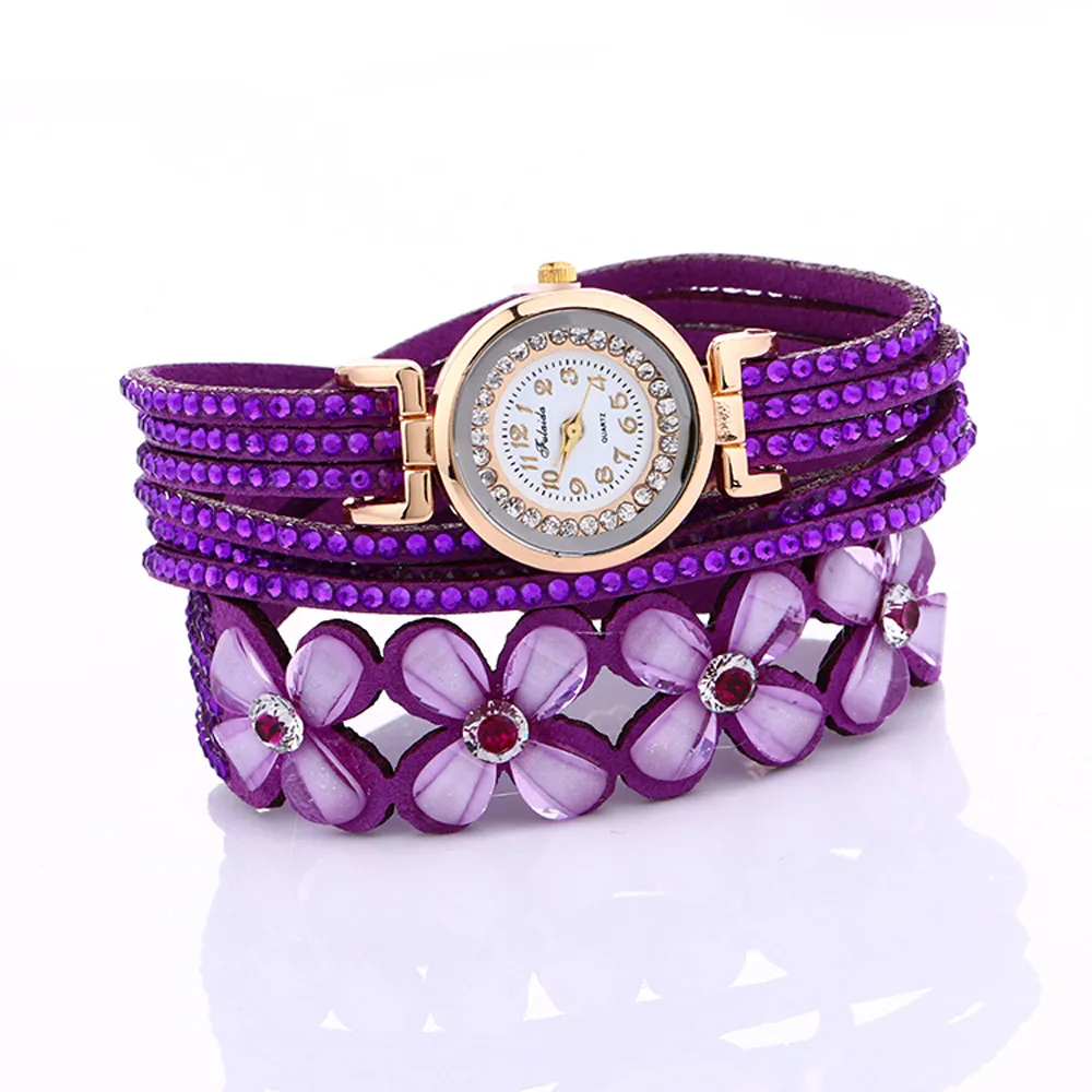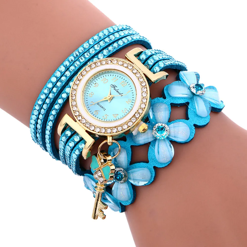 Часы наручные женские кварцевые с кристаллами, брендовые модные повседневные Роскошные с кожаным ремешком, с цветком